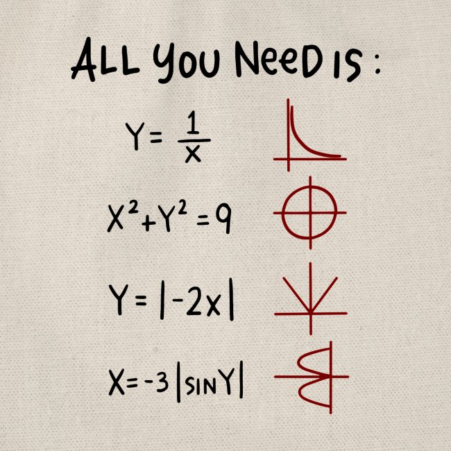 Lisedeyken matematik dersinde fonksiyonları öğrenmeye başladığımız zaman fonksiyonların öğrencilere problem çıkarıp hayatımızı zehir etmek için uydurulduğunu düşünürdüm. Fonksiyonun matematikteki tanımı çok karışık. İnternette çok pratik ve anlaşılır bir benzetme buldum. Fonksiyonu kıyma makinesine benzetiyordu. Makineye bir taraftan et koyarsanız diğer taraftan kıyma alırsınız. Fonksiyonlara da bir taraftan ardışık ….-6,-5,-4,-3,-2,-1,0,1,2,3,4,5,6…sayıları girerseniz formüle bağlı olarak diğer taraftan belli bir formu yakalayan grafikler alırsınız. (Aşağıdaki LOVE grafiği fonksiyonların değil denklemlerin grafikleri. Farkı anlayamayacağınızı biliyorum ama yine de söyleyeyim dedim.)