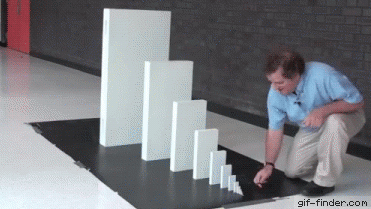 Birbirinden belirli bir oranda, kademeli olarak büyüyen taşların yine belirli aralıklarla pozisyonlanması ve sonrasında uygun bütünlerin, uygun mesafelerle bütünlerin arasında kurduğu ilişkiler birbirlerini yukarıdaki gibi dizildiklerinde en küçüğün en büyüğü kolaylıkla devirdiği gibi bir düğmeye basmanızın ardından arabanın çalışması ya da sadece bir atom parçacığının tetiklenmesi ile zincirleme reaksiyona giren nükleer bombanın dünyanın sonunu getirmesi mümkün.